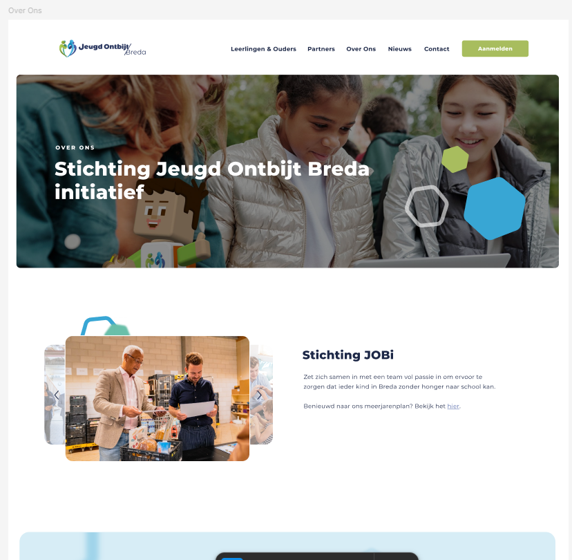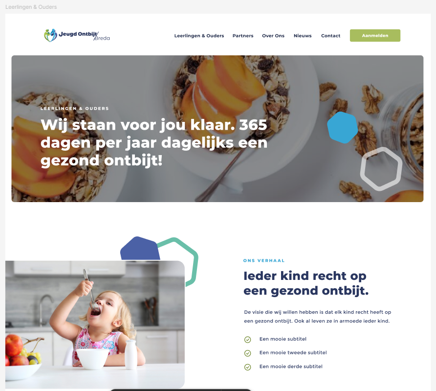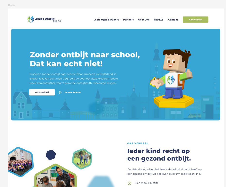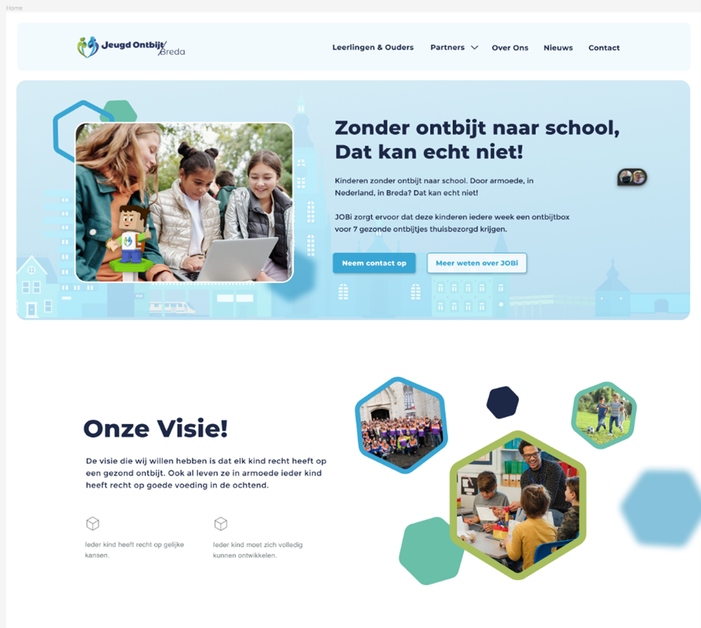 Tijdens mijn tweede stage als Software Developer bij PageKing werkte ik aan het project “Jeugd Ontbijt Breda.” Dit initiatief richt zich op kinderen die zonder ontbijt naar school gaan. Naast kleinere projecten wilde ik mijn designvaardigheden verder ontwikkelen. Na overleg met het team kreeg ik de kans om volledig dit project van begin tot eind te werken, samen met hulp van de designers. Ik begon met het ontwerpen van wireframes in Figma en ontwikkelde het volledige ontwerp, waarna ik de website bouwde in WordPress met behulp van een page builder (Beaver Builder), CSS en animaties. Dit project gaf me waardevolle ervaring met Figma en nieuwe inzichten in design. Het combineren van design en ontwikkeling maakte dit een leerzame en veelzijdige ervaring. Waardoor ik er ook achter kwam dat ik misschien meer met webdesign wilde gaan doen.