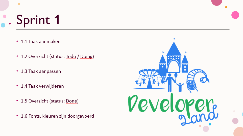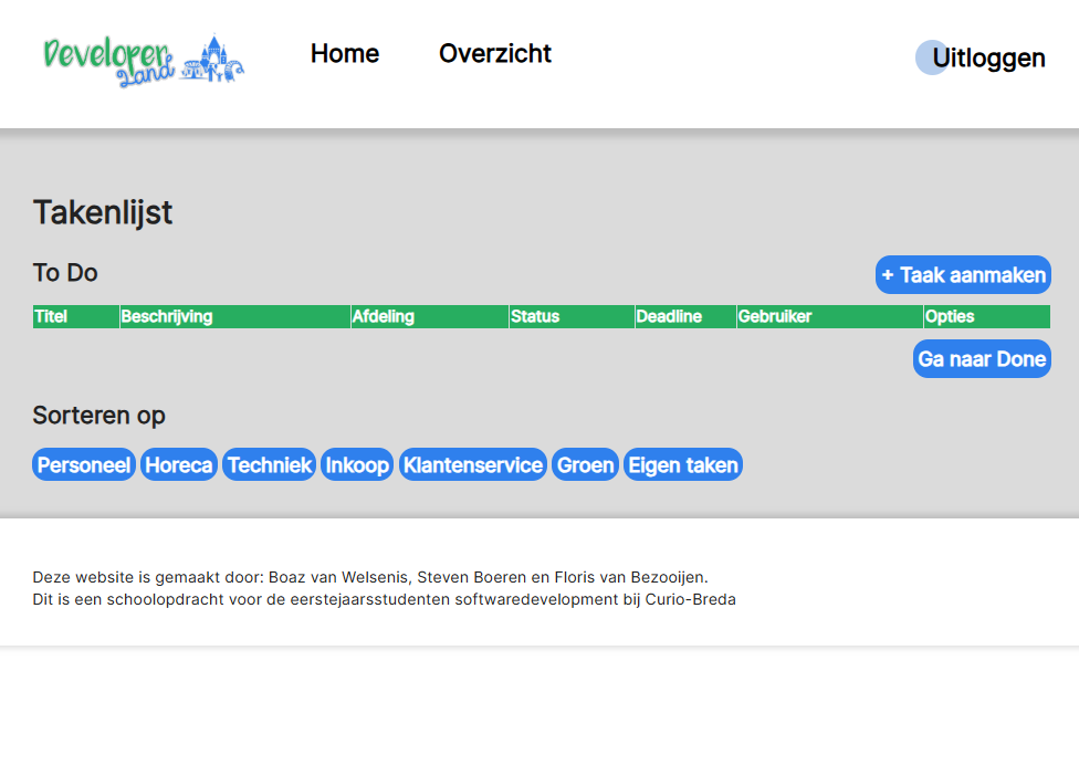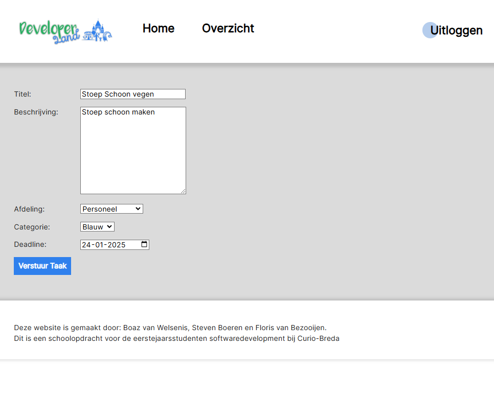 In leerjaar 1 van mijn MBO opleiding als Software Developer heb ik voor een schoolopdracht “Takenlijst” app gemaakt voor fictieve opdrachtgever. Dit was een van eerste web-apps waarbij ik de progameertaal PHP en SQL leerde gebruiken. Samen met groepje klasgenoten hebben we toen hele proces doorlopen van een eerste fictieve gesprek met opdrachtgever tot aan eindpresentatie van de takenlijst-app. Het idee was dat de opdrachtgever een takenplanner digitaal wilde hebben inplaats van een fysiek todo-whiteboard te gebruiken. Ik heb samen de groep de database opgezet, ervoor gezorgd dat je taken kunt toevoegen, bewerken en verwijderen (CRUD). We hebben ook in sprints gewerkt om elke functies van app te doorlopen en te plannen. Het was best een uitdaging om de database zo efficiënt mogelijk in te richten, vooral toen we steeds meer functies toevoegden. Gelukkig heb ik veel geleerd over het optimaliseren van queries en het belang van goede code. Git heeft me ook heel goed geholpen om alles bij te houden en samen te werken met mijn team.